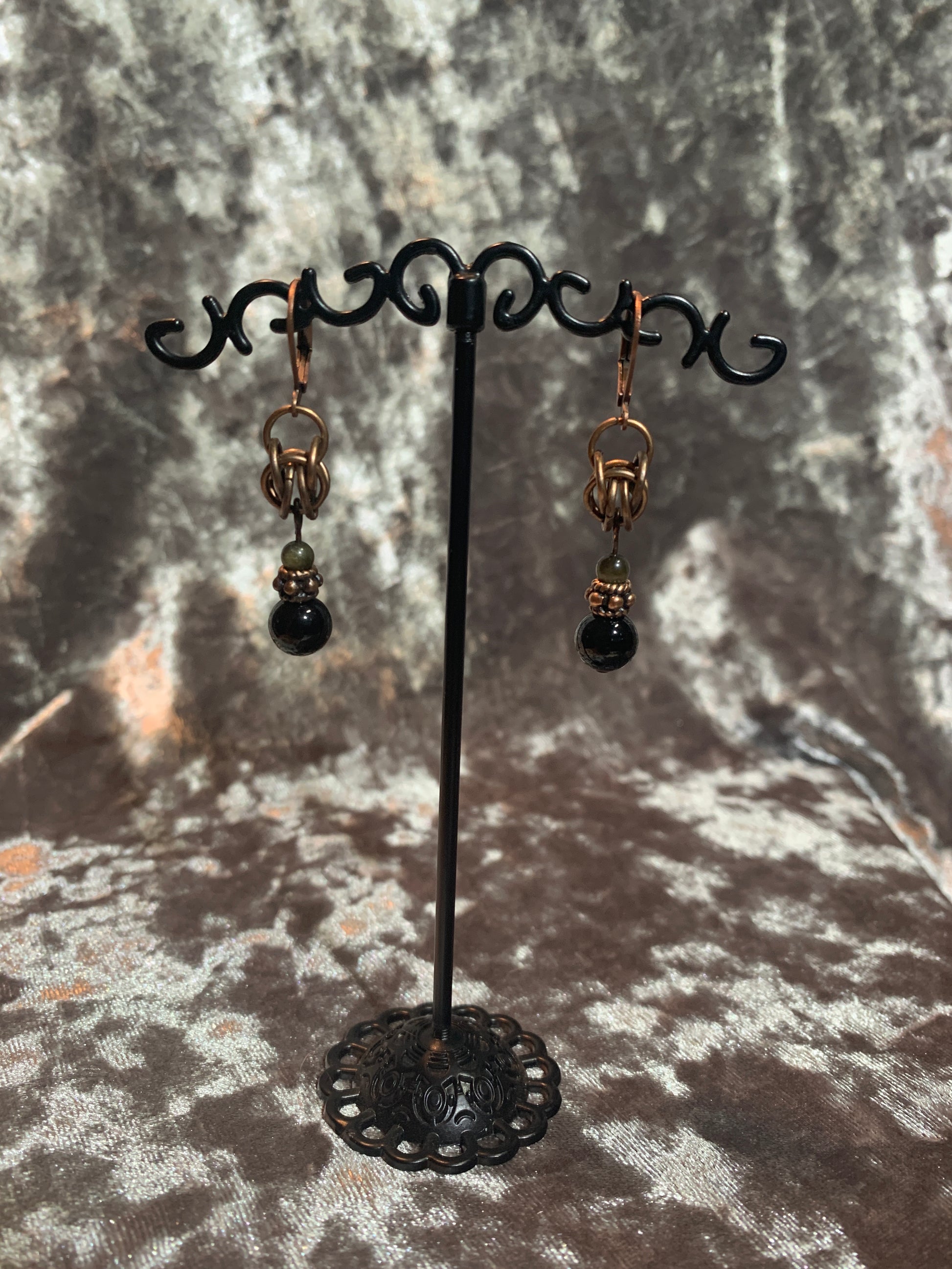 Embrace the wild west with SOM’s, 1873's antique copper earrings. Crafted with a small Byzantine weave, natural golden sheen, black obsidian, and natural black onyx beads, these earrings offer protection, grounding, and block negativity. The perfect accessory for all your Wild West adventures!